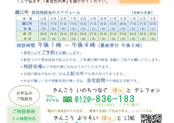 錦江町こころの相談チラシ(令和3年度)