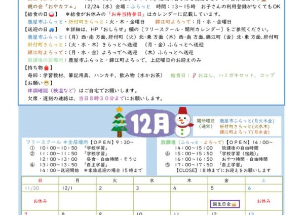 2025年12月開所カレンダー