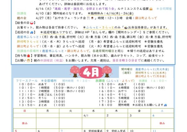 2026年4月開所カレンダー